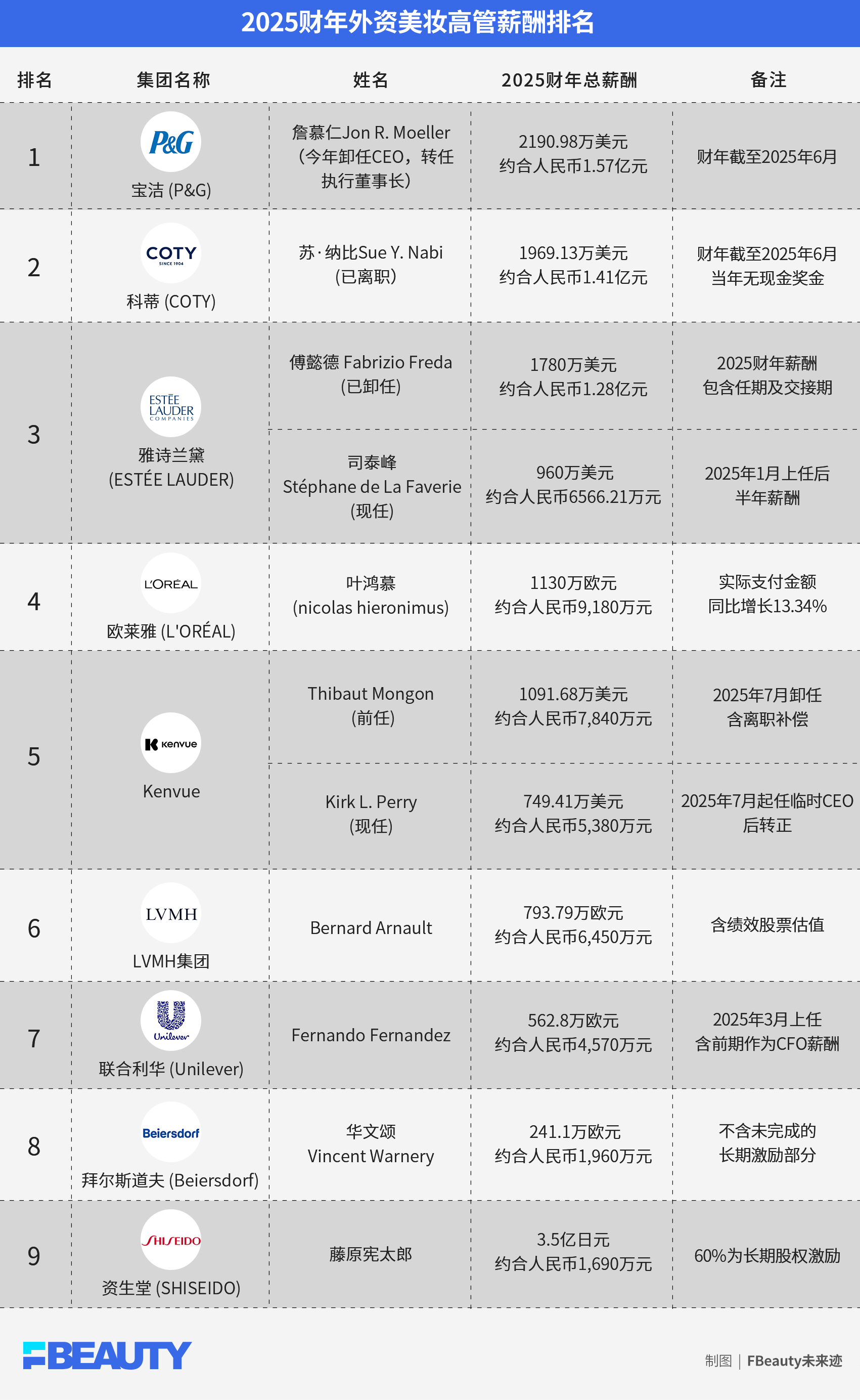 《FBeauty未来迹》梳理了9家美妆大公司CEO的最新薪酬账单,试图穿透数字表层,读懂巨头们为掌舵者定价的逻辑与信号。