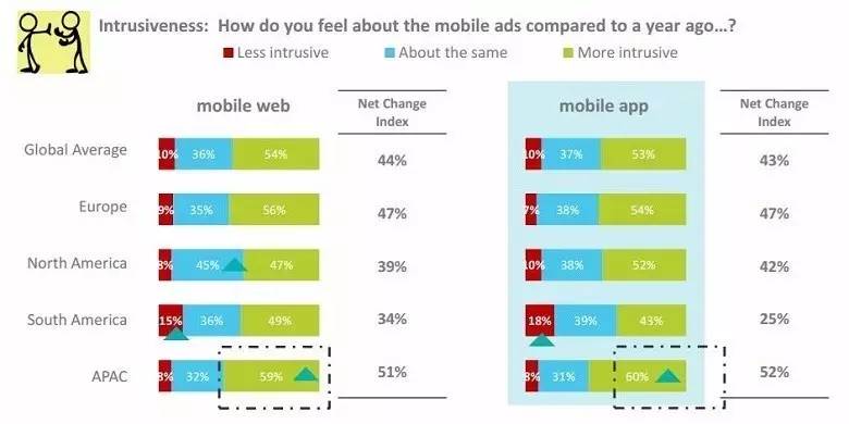 在对18个不同国家的3600名移动用户进行调查时,61%的受访者表示较去年,今年他们浏览手机发现更多的广告,而54%的受访者认为手机广告越来越具有侵扰性。