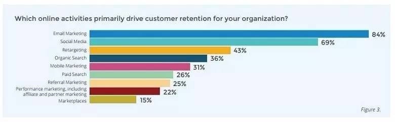 对于客户收购,80%的受访者认为有机搜索是主要动力,75%认为是付费搜索,而63%认为是社交媒体。