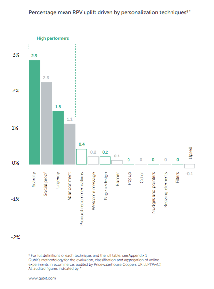 结果显示,专注于最有效的优化和个性化技术(包括社会认同,紧迫性,稀缺性,比如凸显库存数量低的物品),可以帮助企业增加约6%的收益。