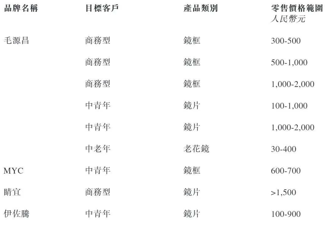 毛源昌眼镜的收入主要来源于销售自有品牌和第三方品牌的各类中高端眼镜产品。