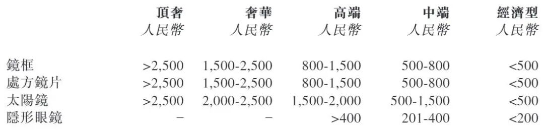 同时,毛源昌眼镜还经营有85个国内和102个国际知名第三方品牌,包括巴黎世家(BALENCIAGA)、陌森(MOLSION)、依视路等,产品涵盖镜框、处方镜片、太阳镜和隐形眼镜等。第三方品牌眼镜产品同样售价不低,按照售价不同,被分为经济型(低于500元)到顶奢(超过2500元)多个档次,公司称定价是遵循供应商的建议市场价格。