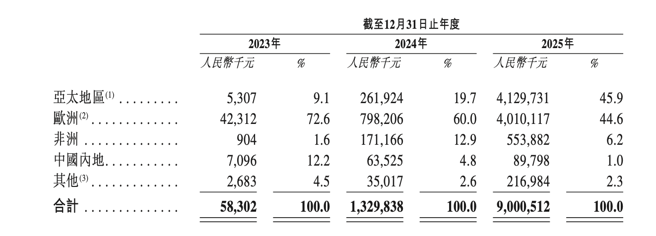 据港股公告数据,思格新能的收入由2023年的0.58亿元增至2024年的13.3亿元,并于2025年进一步增至90亿元。三年间的收入增长达154.4倍。