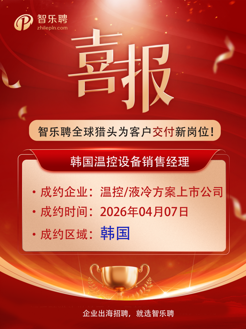 以英维克为例,作为冷板式液冷国内龙头,已进入英伟达、谷歌供应链,2026 年更是重点发力欧美日韩市场 —— 比如韩国,作为全球半导体与 AI 算力枢纽,数据中心密度极高、能耗管控严苛,智乐聘作为全球猎头服务商,也帮助英维克在韩国多次招聘本地市场开拓人员,帮助英维克的全链条液冷方案速抢占韩国当地市场。