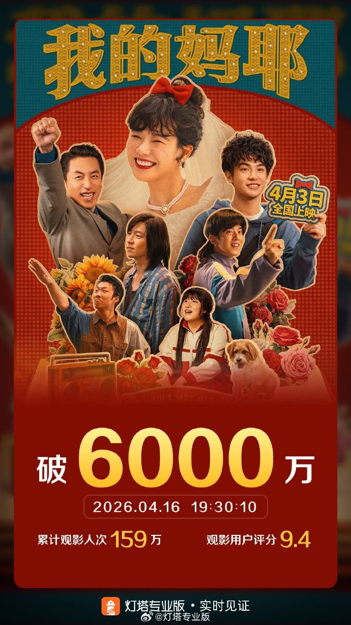 据灯塔专业版实时数据,截至4月16日19时30分,影片《我的妈耶》票房突破6000万元。