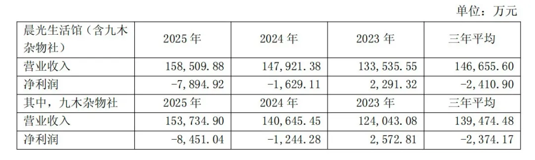 就在上个月,杂物社的母公司晨光集团交出了2025年的成绩单。公司营业收入同比增长3.45%,经调整净利润却下降8.92%。其中,被寄予厚望的九木杂物社亏损接近八千万元:接近前一年亏损的4.8倍。