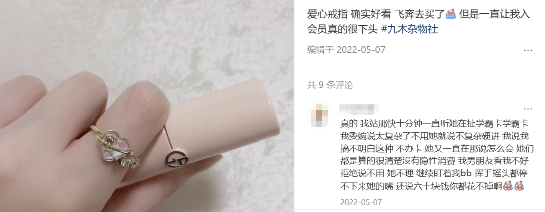 包子描述的是22年前后在小红书上爆火的“爱心戒指”,让无数人在杂物社充了第一张会员卡