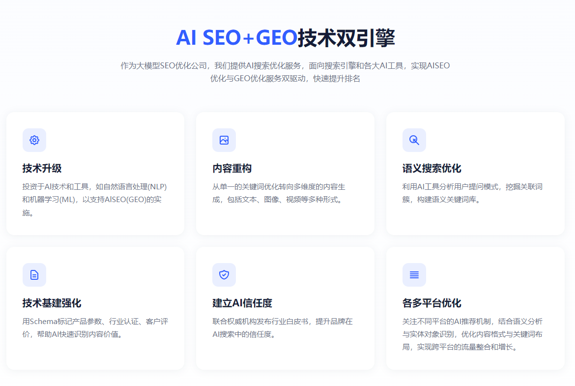对于大多数传统制造、商业服务、软件服务等领域的中小企业来说,一站式GEO+SEO组合方案能降低落地门槛,帮助企业快速完成布局,获得持续的流量曝光。