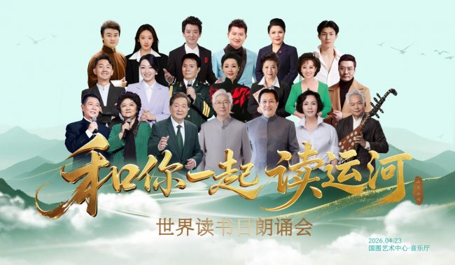 当世界读书日的书香邂逅千年运河的文脉,一场跨越时空的文化盛宴即将在国家图书馆绽放。2026年4月23日19:30,由中国出版协会、国家图书馆、北京市海淀区文化和旅游局主办,中国出版协会全民阅读工作委员会、海淀区三山五园文化艺术中心、北京陈铎艺术创作室、北京国图文化艺术有限公司承办的“和你一起读运河”世界读书日朗诵会,将在国家图书馆艺术中心・音乐厅璀璨登场,以声传韵,以诵扬帆,带观众遨游运河文化的浩瀚长河。