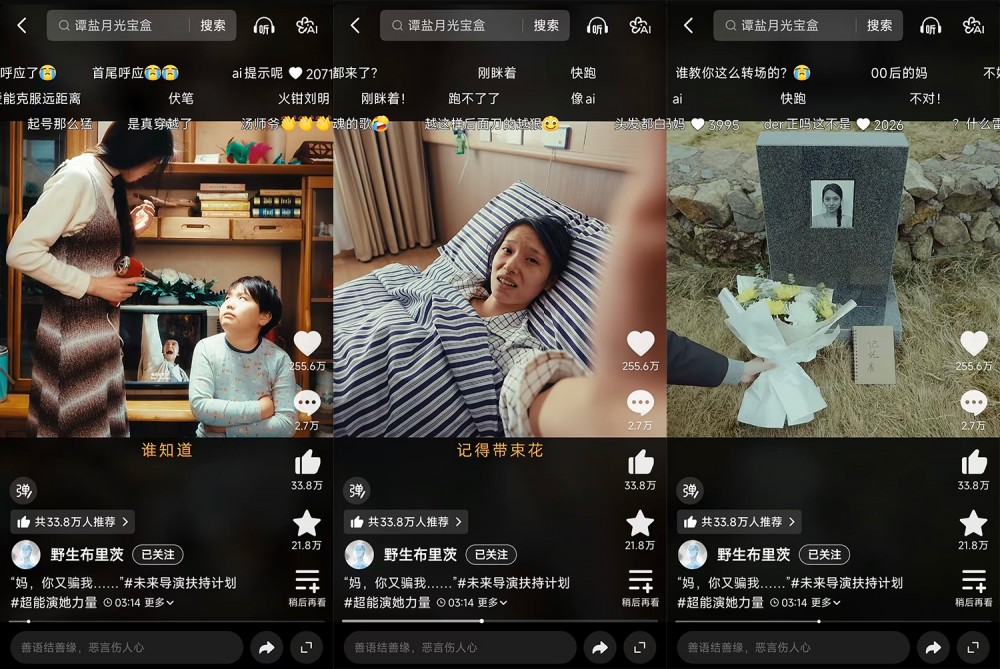 首条视频就获得3000万播放量,是怎样的存在?3月榜单即涌现了这样的现象级创作新人。创作者@野生布里茨 通过短片《月光宝盒》讲述了一对母与子的故事。该片以母亲的“谎言”为线索,串联起母亲对孩子从幼年到成年的关爱。最终“时空穿越”的惊艳结尾,体现出中国式母亲对孩子无微不至的关怀,感动无数网友。值得一提,抖音于3月宣布了“未来导演扶持计划”一系列新扶持举措。@野生布里茨 这部短片一炮而红,就获得了这一计划的支持。该视频现已获赞超256万,账号粉丝也突破了20万。