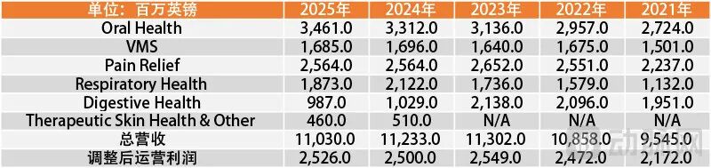 反而是分拆前母公司的GSK在近年连续增长。2025财年,GSK实现营收326.67亿英镑,同比增长4.1%。这一营收已经接近分拆前整个GSK的营收(2021财年341.14亿英镑),若按排除原消费健康业务重新计算后的历年财报,分拆后的GSK业务实际上已经连续5年保持增长。