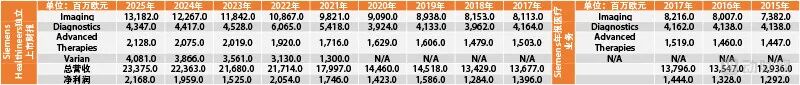 Siemens Healthineers分拆前后财报数据(动脉网整理)