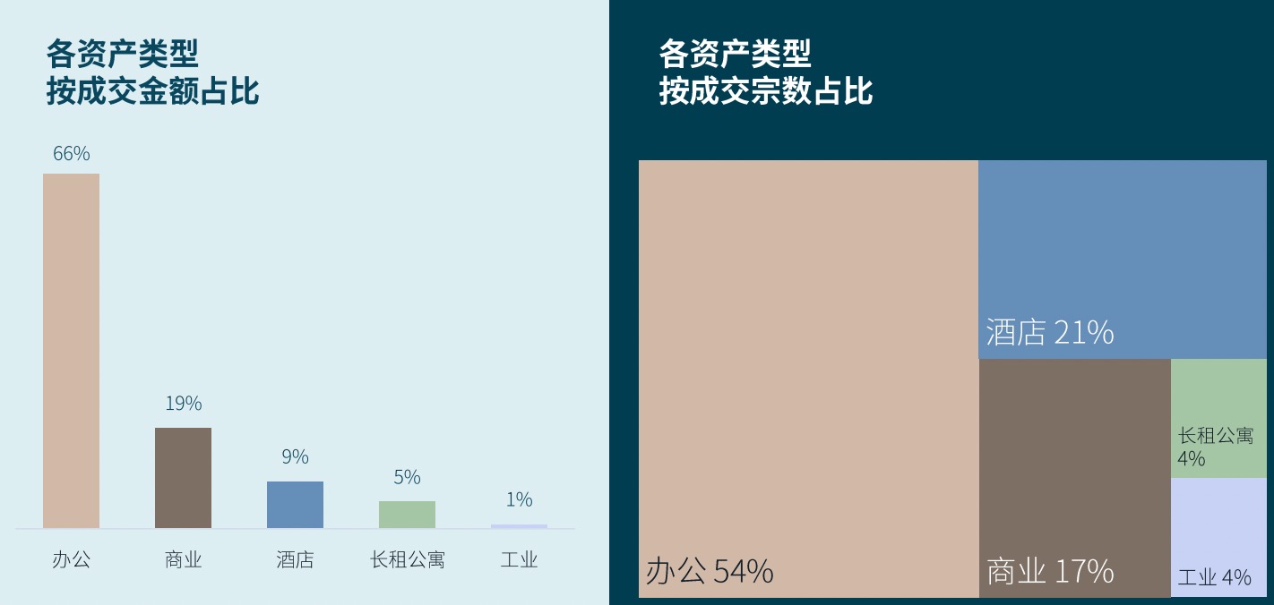 从成交结构来看,呈现以下两大特征,一是交易聚集内环内,本季度共录得24宗交易,其中15宗为内环内资产,成交总额达103亿元,占一季度总成交额的70%。二是地标办公备受大资金青睐,核心区域办公物业仍为买家投资首选,买家资金体量亦越来越充沛,一季度办公物业交易额达97亿元,占总成交额的66%。
