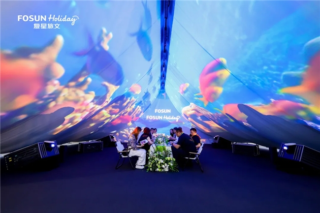 本届博览会,复星旅文在现场打造了以“光影织梦,山海无界”为主题的沉浸式度假体验空间,首次携“超级度假村”“超级度假区”和“超级文旅Mall”三大文旅度假产品线全阵容亮相。
