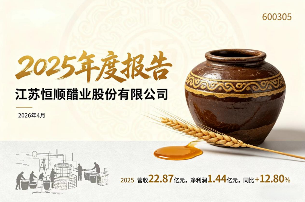 2026年4月15日,江苏恒顺醋业股份有限公司(600305.SH)发布了2025年年度报告。这份年报不仅是对过去一年经营成果的复盘,更是一份面向“十五五”的战略宣誓书——从“中国醋王”向“餐桌调味品全方位解决者”与“功能性饮品推广者”全面进军,系统性地提出“333441”发展路径,剑指“十五五”末期中国调味品行业前三。