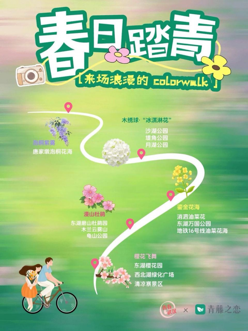 春意渐浓,城市被重新上色。近日,婚恋交友平台青藤之恋联合共青团武汉市委推出《武汉小众约会地图》第四期——“春日Colorwalk篇”,以色彩为线索,串联起武汉十余处小众踏青点位,邀请年轻人走出室内,在城市春日时空里相遇、相处、慢慢心动。