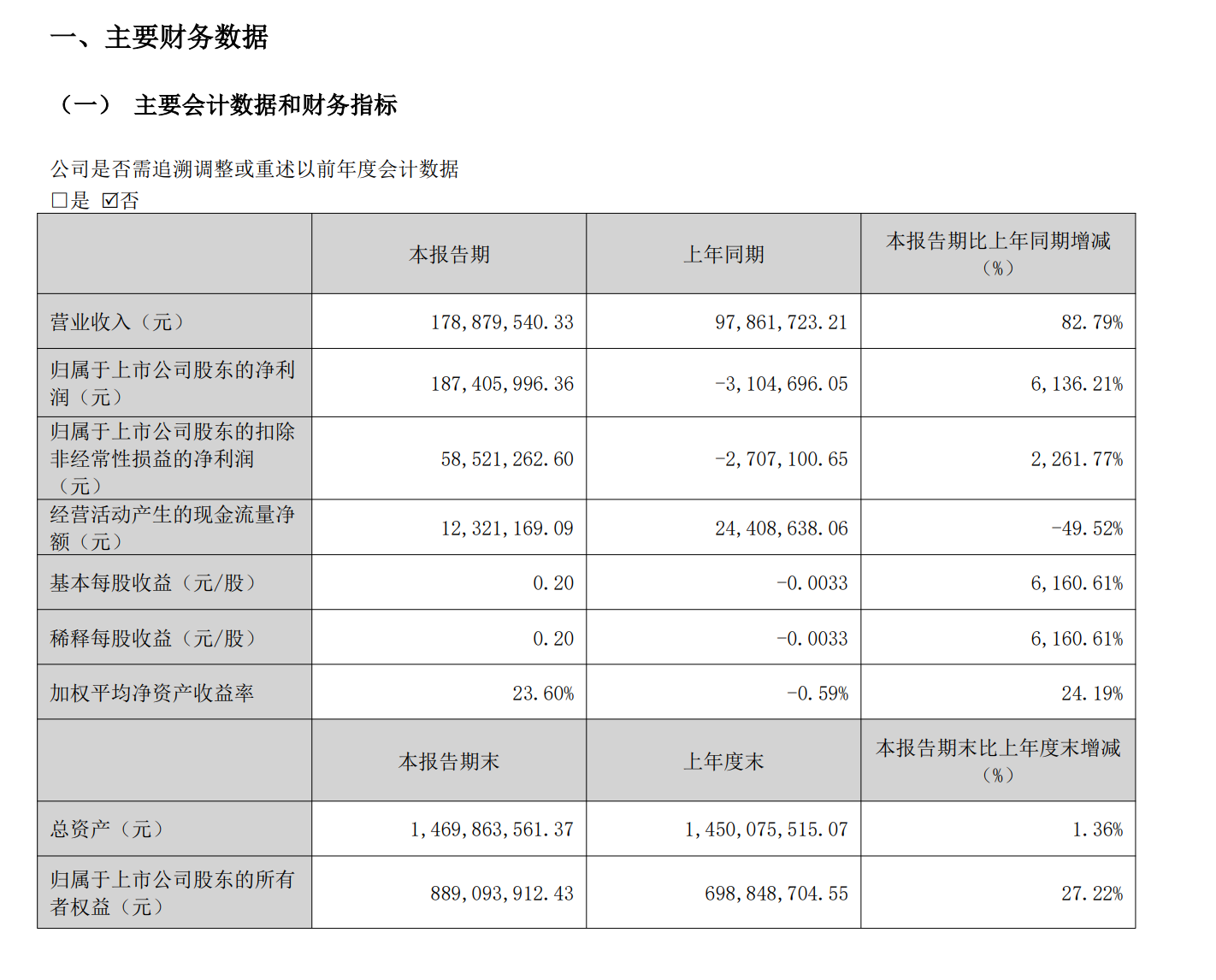 债务的彻底解决也显著改善了公司的资产负债表。截至2026年一季度末,随着崔炜案债务全部履行完毕,公司其他应付款、一年内到期的非流动负债分别为0.57亿元、0.19亿元,较上年末分别下降67.63%、71.52%。同时,公司归属于上市公司股东的所有者权益达到8.89亿元,较上年末增长27.22%。