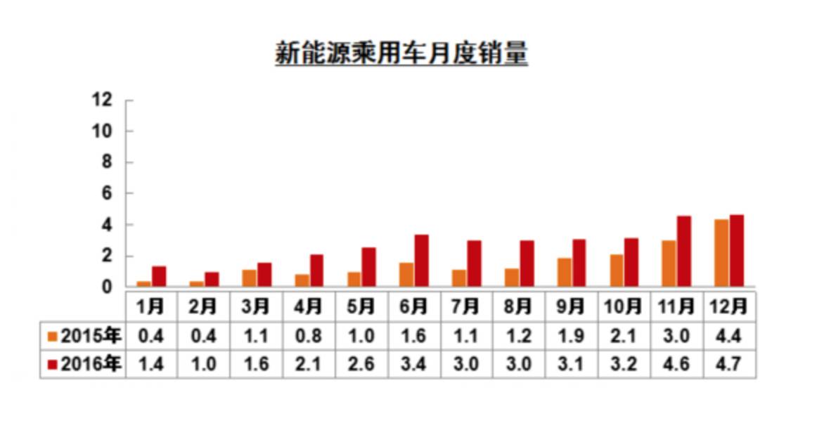 据统计,目前国内在建中的电动汽车产能已经超过200万辆,而目前电动汽车的销量还远不及预期。中国汽车工业协会的数据显示, 2016年纯电动乘用车产销分别完成26.3万辆和25.7万辆,产销虽同比分别增长了73.1%和75.1%,但增速明显放缓。根据工信部牵头指定的《汽车产业中长期发展规划》,明确到2020年,我国新能源汽车年产量将达到200万辆。如今产能提前达标,销售还未见放量。