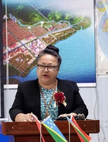 图为所罗门群岛国家旅游部部长严翠琳女士致辞
