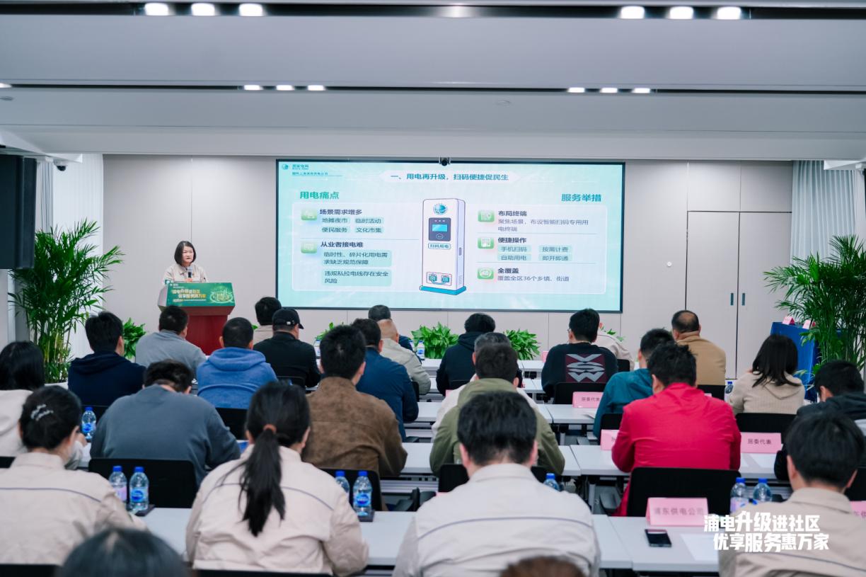 活动现场,国网上海浦东供电公司围绕“浦电优享5.0”八大民生服务核心举措作详细解读,全面介绍扫码用电、办电“零投资”、无感换表、电梯加装提速、充电桩报装优化、合同网签、契约制接电、配网升级等创新便民服务。其中,“扫码用电”可实现临时用电自助办理、即开即通;办电“零投资”覆盖200千瓦及以下低压用户,全面免除外线接入相关费用;“无感换表”采用不停电作业装置,实现换表不扰民、不中断用电;契约制接电以标准化文本明确权责与时限,建立周管控机制,确保履约闭环、接电提速;配网升级通过精准改造、主动抢修,全面提升供电可靠性与用电安全性。一系列服务举措直击社区用电、商户办电痛点难点,推动服务便利化、智能化、暖心化升级。