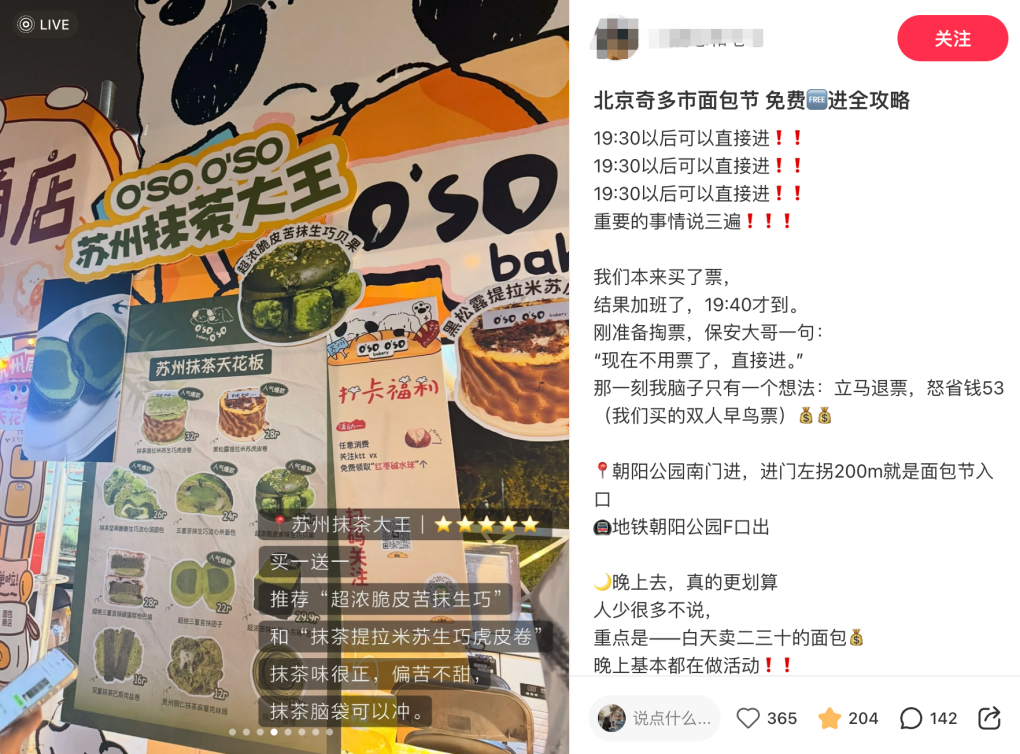 毕竟,开一家实体门店动辄需要投入百万,即便是轻量快闪店成本也不低,而参与一场为期 3 天的面包节,花费往往不过万元,就能真实测试北方市场的接受度、客流与用户反馈,何乐而不为。