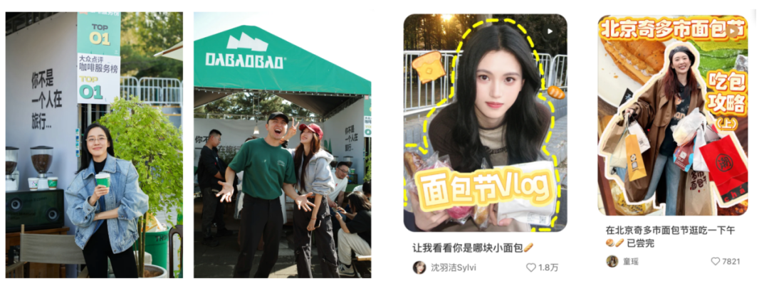今年面包节,在咖啡品牌DABAOBAO旅行商店摊位附近,不少网友偶遇了央视主持人尼格买提与演员王智;演员童瑶、沈羽洁也到场打卡,并录制了专属 Vlog。