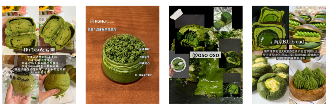 从多重浓抹层层叠加,到苦抹流心、抹茶巴斯克、抹茶挞等多元形态,各烘焙品牌集中发力抹茶深度研发。不再局限于简单风味点缀,而是通过层次、口感、搭配做出差异化创新 ,直观展现出当下烘焙市场的口味与材料新走向。代表有,叁拾 island 的抹门 4 次方四层浓抹、O'so O'so 五重苦抹生巧流心、huhu cake 四重抹茶巴斯克、南京网红 B.U.Bread 抹茶挞酥等。
