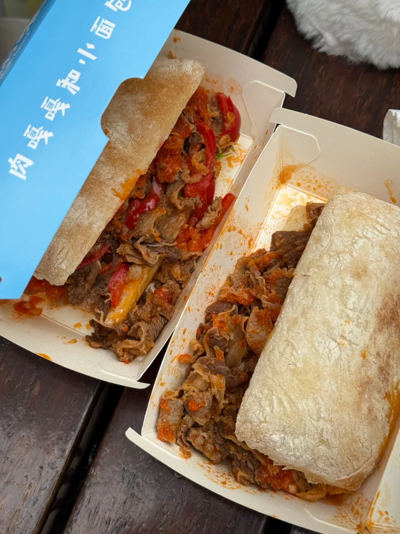 现场一众烘焙更是把面包玩出了极致烟火气,不惜成本、疯狂堆料,甚至把面包直接做成了 “中式肉夹馍”。