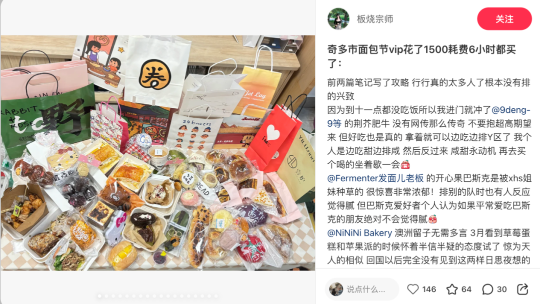 可以说,没有一个面包脑袋能空着手离开北京面包节。有不少网友在小红书上晒起了面包节战绩,花费上千元囤货已是常态。