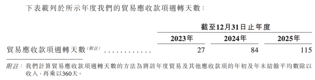 尽管2025年应收款绝对值有所下降,但同期贸易应收款项周转天数却从2023年的27天增至2024年的84天,2025年进一步升至115天,反映出其回款周期大幅拉长。