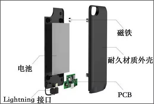 外壳和电池都带有磁铁,手机没电了就磁吸贴上,不会松动,不会移位。