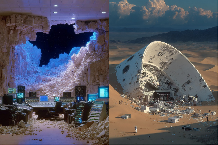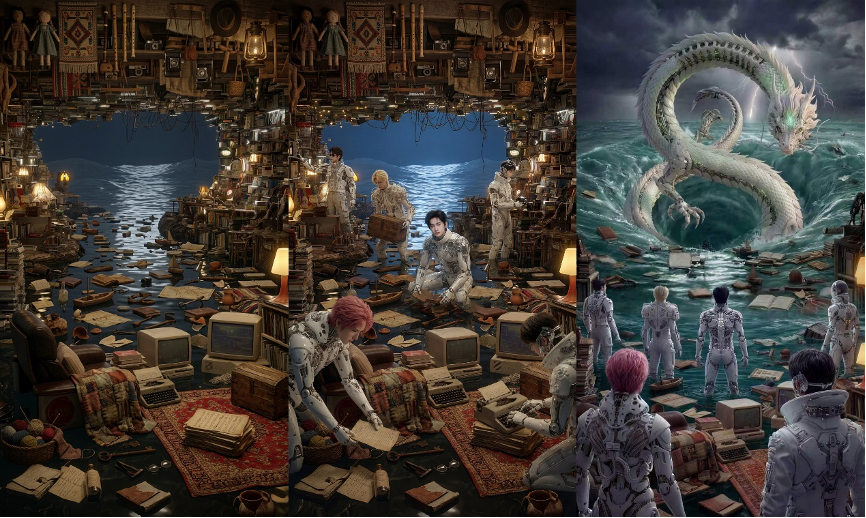 随后,辣味花手借助可灵AI为每一位艺人定制专属场景,融合了赛博朋克、宇宙空间、梦幻秘境、未来都市等多种风格。这些在现实中不可能搭建的效果,却在AI世界里完美呈现,不仅满足了艺人创意需求,也成就了整支MV中多个高光片段。