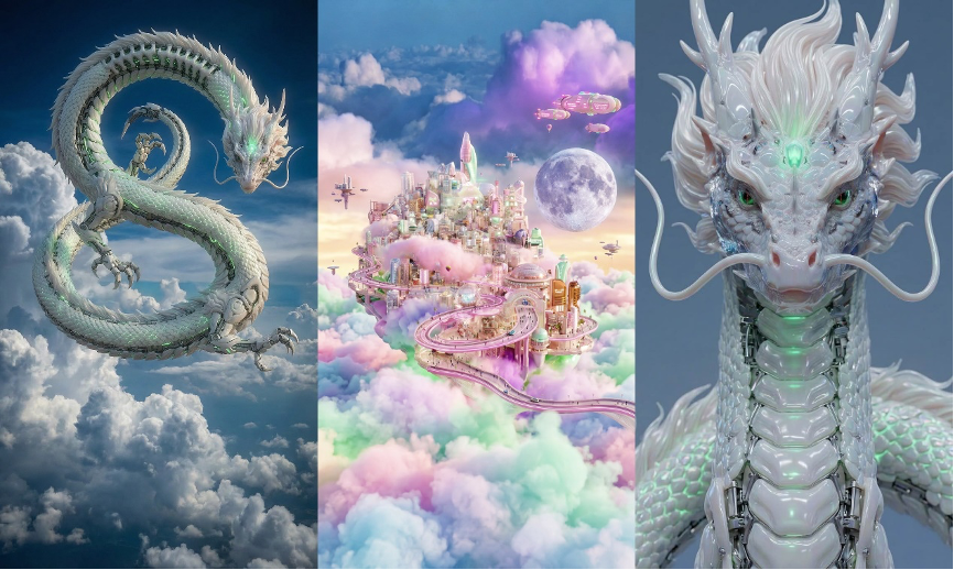 在复杂设定与多场景切换中,可灵AI稳定维持整体画风与视觉调性的统一,在保证艺人个体差异表达的前提下实现风格一致与美学连贯。无论是MV中“AI巨龙”的奇幻设定,还是艺人基于自我想象的AI形象设计,都能精准捕捉哇唧唧哇与艺人的创意构想,在视觉风格、叙事节奏、整体美学上保持高度同频。