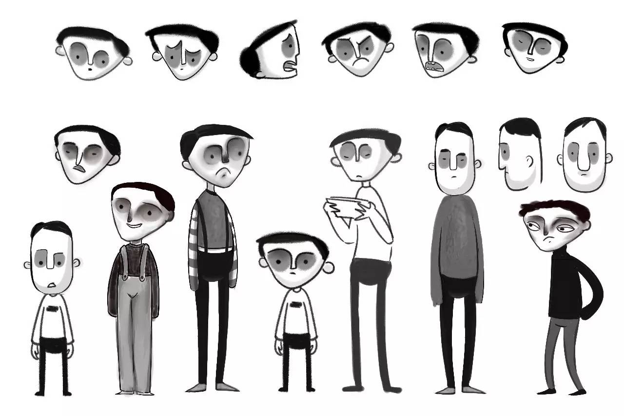 葛苾佳:关于创作过程中巨婴概念的深化,从“巨大婴儿”到长大的现实的生活中的形形色色“巨婴”的真实案例。最初想到这个主题时勾画了一些巨婴的概念图,都是巨大的婴儿,想法也是最终变成一个肥肥大大的婴儿没有自理能力体现的是无助的样子,在寻找各种案例的过程中,把巨婴现象的个体与群体特征分析,并推衍其家庭成因,也结合了社会层面的诸多问题家庭的共性最终形成了清晰的人物关系和家庭状态:爸爸家庭身份的缺失,妈妈的过分溺爱,孩子最终成为“巨婴”的这样的问题家庭。