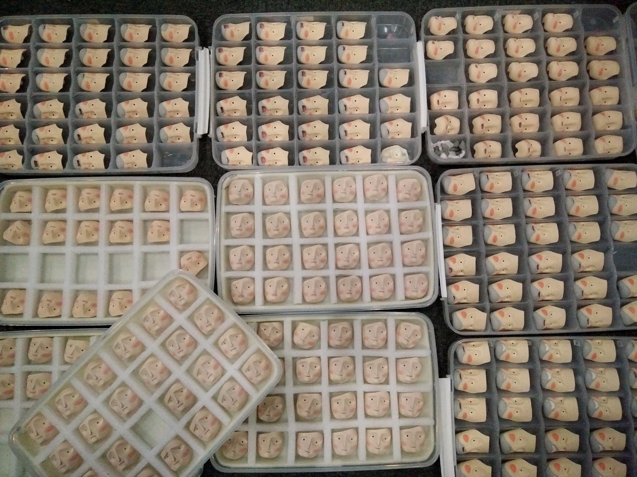 陈昊:这过程要和那边反复核对,因为最重要的是和偶的匹配问题。相比之下更苦的是上色,几百张脸壳,每一个手动上色,还不能有偏差。