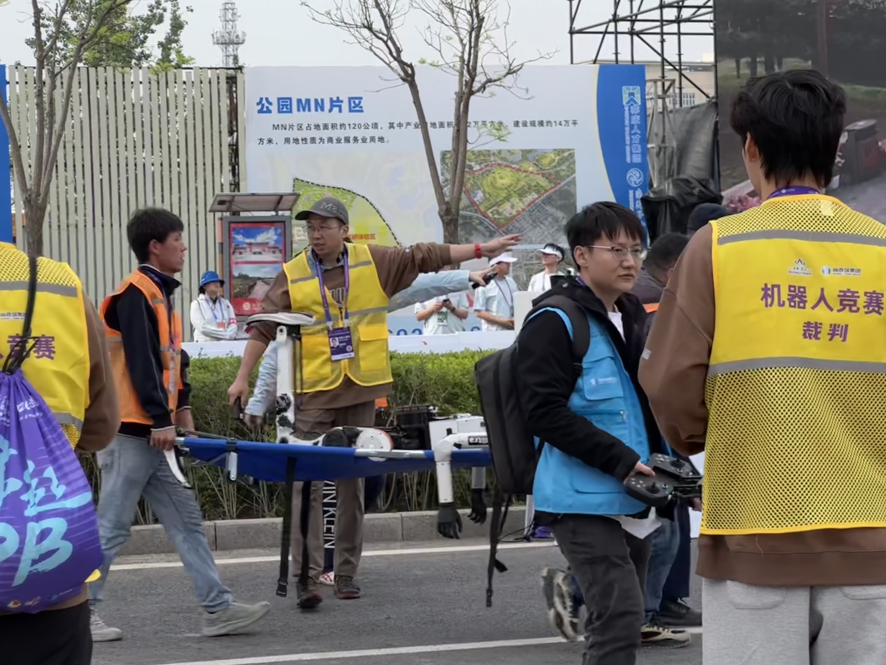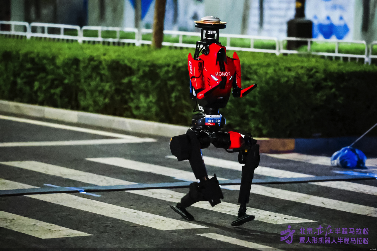 一年后,赛场规则本身发生变化,陪跑员被取消,人工干预被严格限制,场内外换电会直接影响成绩计算,有40%的机器人实现了自主导航。人形机器人第一次独立面对一条复杂而漫长的真实道路。但最快完赛时间直接缩短近两个小时,最短完赛时间为50分26秒,机器人从面前掠过,只剩一道残影。