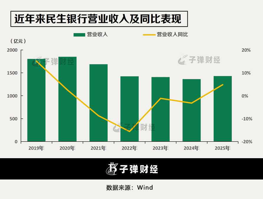 2025年,民生银行经营迎来重要转折,营收迎来连降四年后的首次正增长。