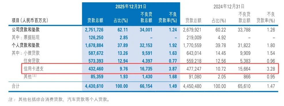 不良方面,截至2025年末,民生银行信用卡不良贷款率高达3.87%,较上年末大幅上升0.59个百分点;不良贷款金额达到167.35亿元,较上年末增加10.71亿元。