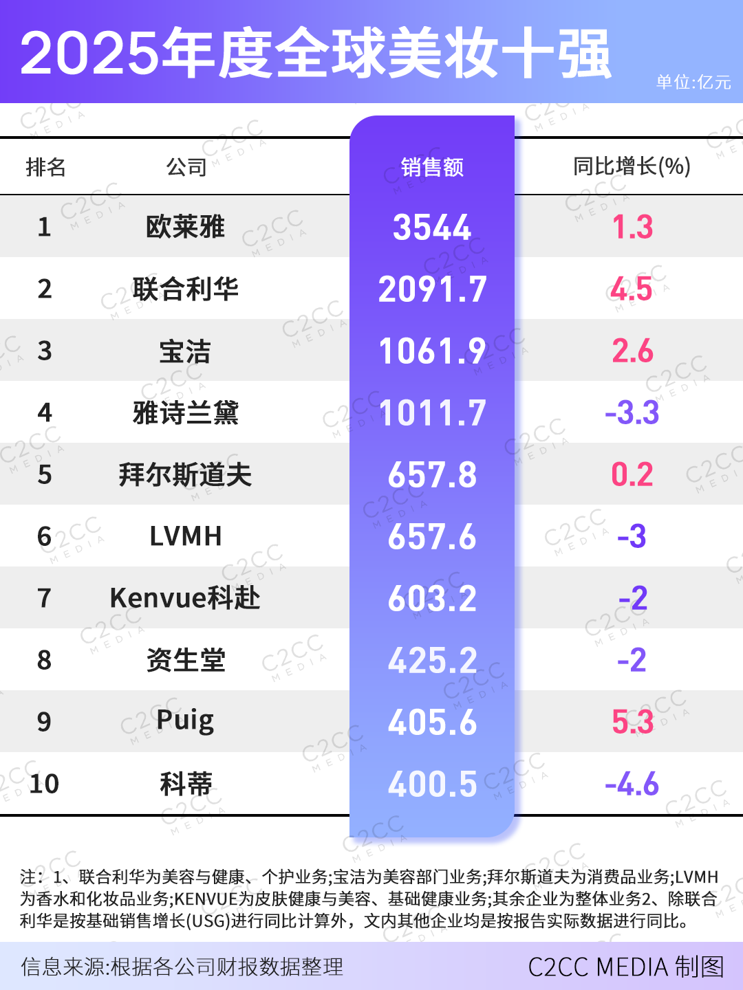 全球美妆行业正经历一场增长危机。当前多数国际美妆企业业绩增长明显放缓,2025年度全球美妆TOP10中,雅诗兰黛、资生堂、科赴、科蒂等半数企业出现不同程度的业绩下滑,行业已全面进入存量竞争时代。