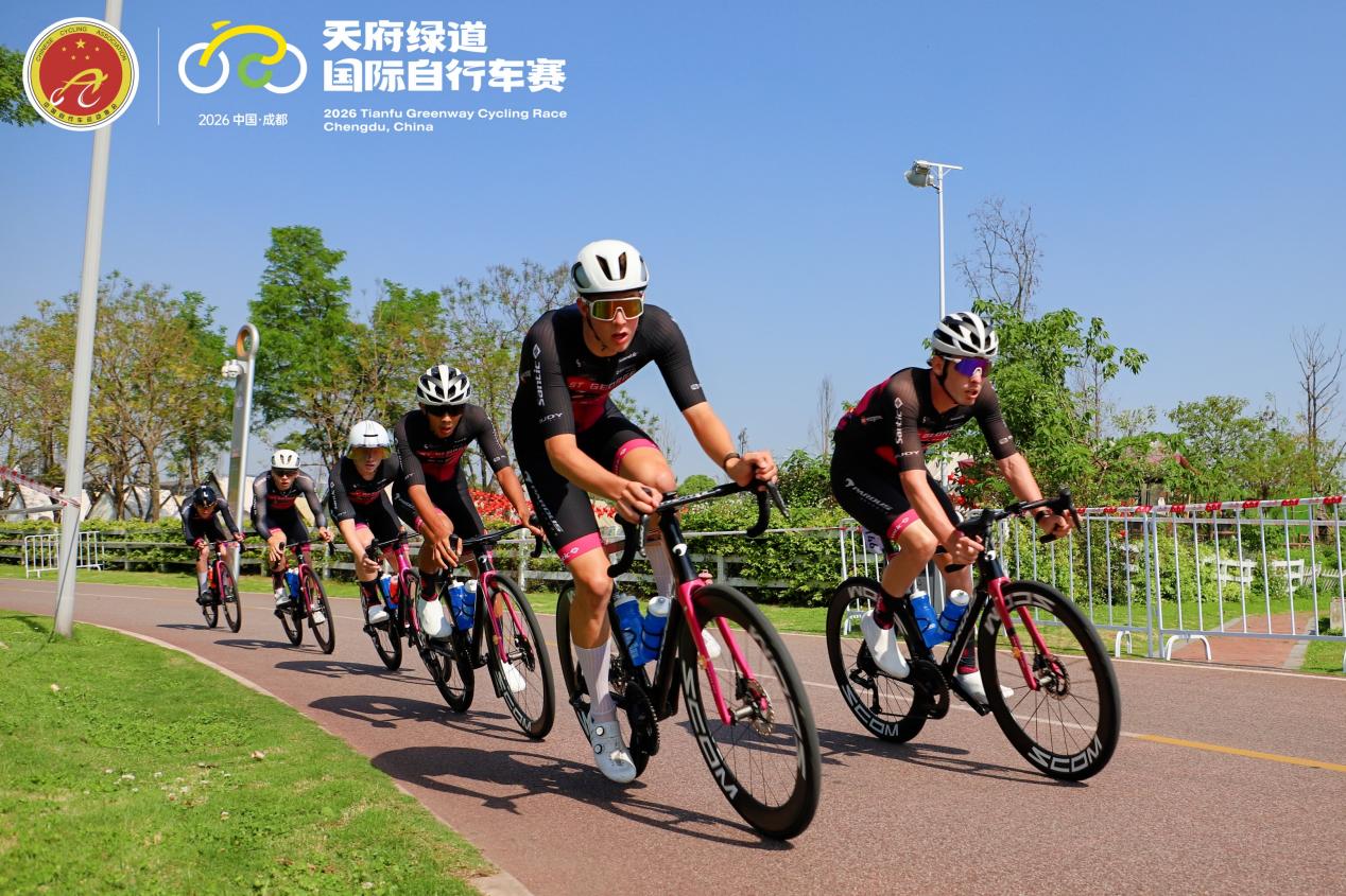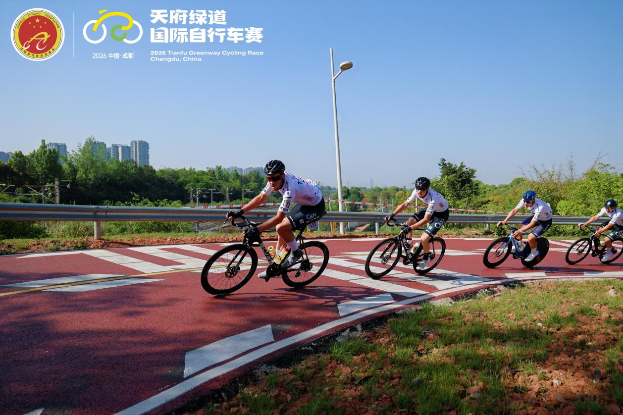 这是2026中国·成都天府绿道国际自行车赛团体计时赛的现场。96公里赛道,蜿蜒于全球最长的环城绿道之上。
