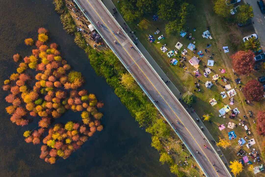 清晨,绿道是亲子家庭的乐园。孩童踩着平衡车在专属道上歪歪扭扭地前行,身后跟着小跑的父母;周末,帐篷和天幕在湖边草地“生长”出来,让自然成为客厅的延伸。傍晚,散步的夫妻、慢跑的青年、坐在长椅上发呆的老人,共同构成了绿道最日常也最温暖的画面。