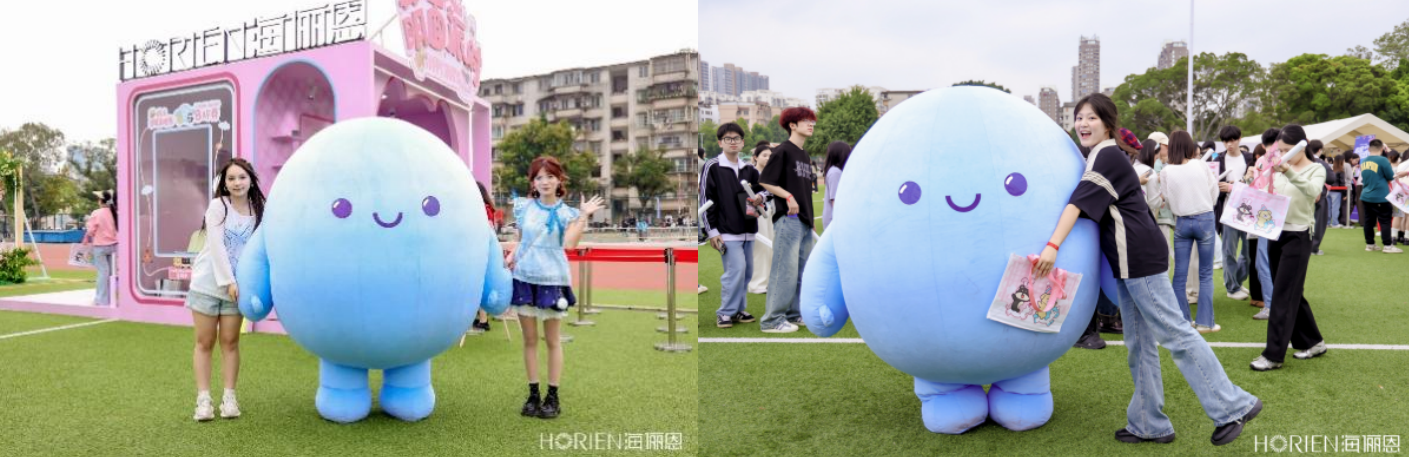 更值得留意的是,海俪恩在不同站点呈现出的“变”与“不变”。变的是表达方式——在吉大它是“温暖房子”和暖贴,在西大它是恰到好处的晚风氛围和可以收藏留念的校园卡套。不变的是内核——“恩恩”依然是那个可以被拥抱、被合影的IP,萌系展台依然是校园里最热闹的角落。这种核心资产不变、在地表达常新的策略,让品牌在不同土壤里都能自然生长。