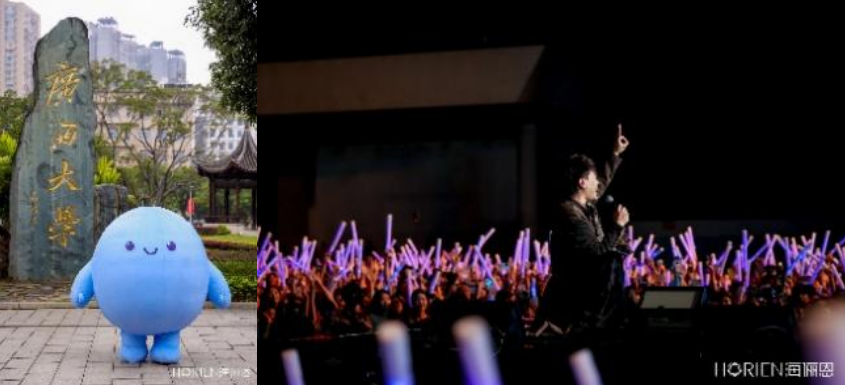 当夜幕降临,舞台灯光最后一次以“恩恩蓝”点亮广西大学的夜空,那些曾在深圳、西安、长春、上海点燃过的热烈氛围,在这所学校蔓延。