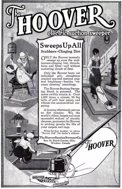 感谢穆雷·斯潘格勒(Murray Spangler):世界上第一个家用真空吸尘器的发明者。但为什么胡佛才是吸尘器界的大佬呢?原因在于当时本是皮革制造商的胡佛,看到了这种家用真空吸尘器的市场潜力,于1908年从他妻子的表弟(也就是发明者穆雷)那里购买了发明专利,开始大规模生产出售这种电动吸尘器,并成立了胡佛公司。