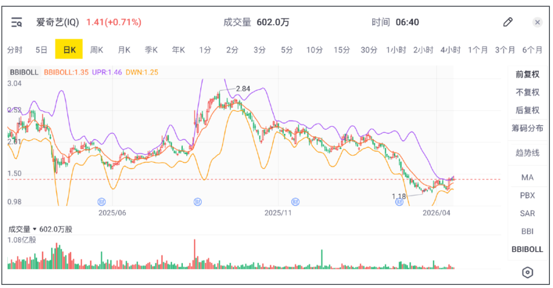 于爱奇艺而言,资本市场的颓势,急需新的故事来支撑。比如,2026年3月,爱奇艺股价盘中已经跌至1.18美元,创下历史最低点,被市场调侃为“老登股”。