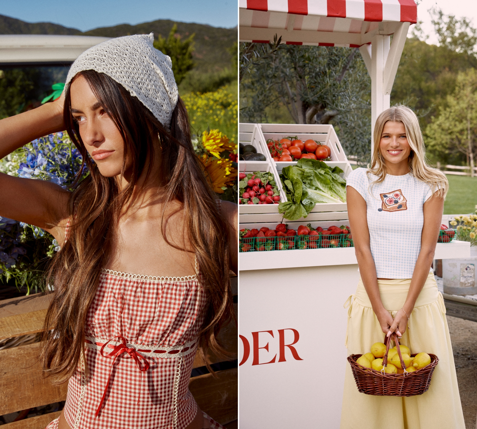 同步推出的“Original Farmers Market限定系列”,则将品牌美学与门店所在地的文化做了更深度的绑定。该系列以市集文化为灵感,融入趣味食物图案、棋盘格元素,通过钩针编织、刺绣等手工细节呈现,涵盖服装、泳装及配饰单品。它将Farmers Market近百年的生活气息转化为了CIDER独有的玩味设计语言,这种“在地化限定”策略,既制造了稀缺感,也强化了门店与所在社区的情感关联。