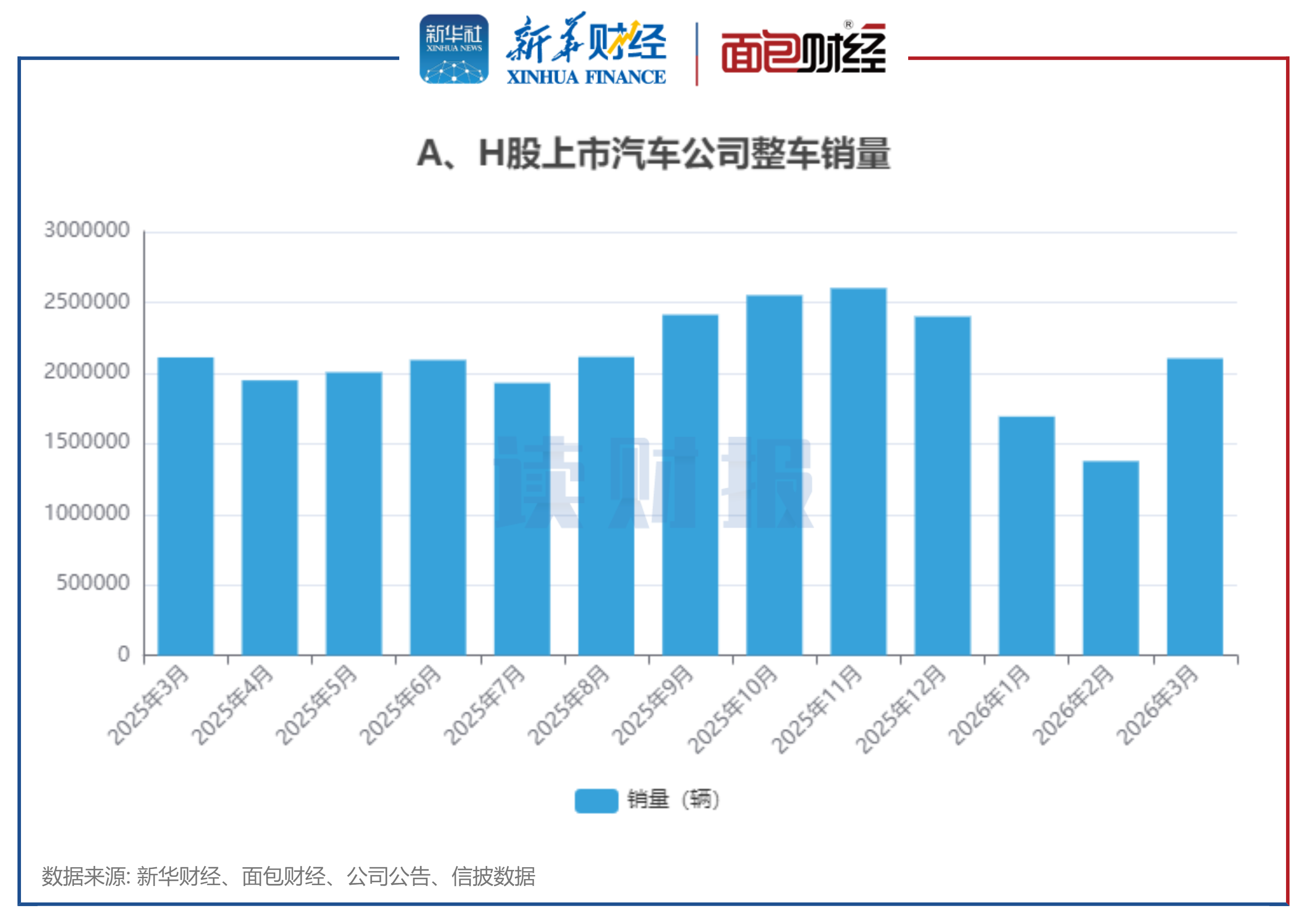 图2:A、H股上市汽车公司2026年3月整车销量排名