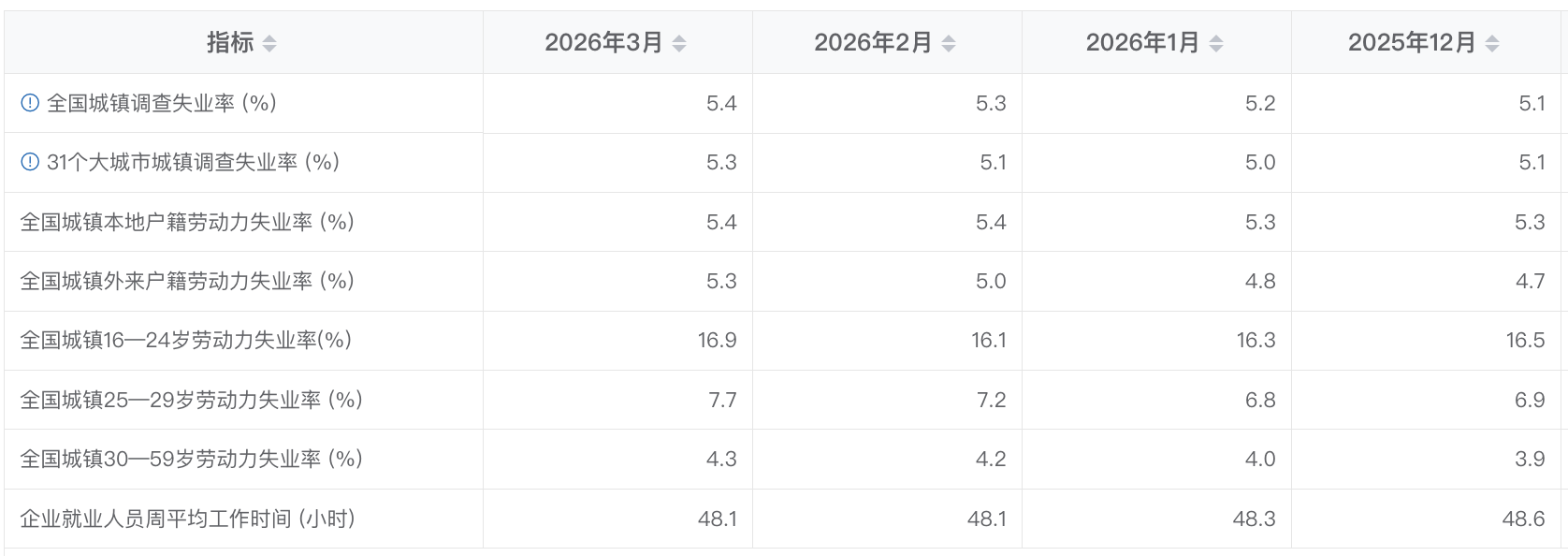 4月21日消息,国家统计局发布2026年3月份分年龄组失业率数据。3月份,全国城镇不包含在校生的16-24岁劳动力失业率为16.9%,不包含在校生的25-29岁劳动力失业率为7.7%,不包含在校生的30-59岁劳动力失业率为4.3%。