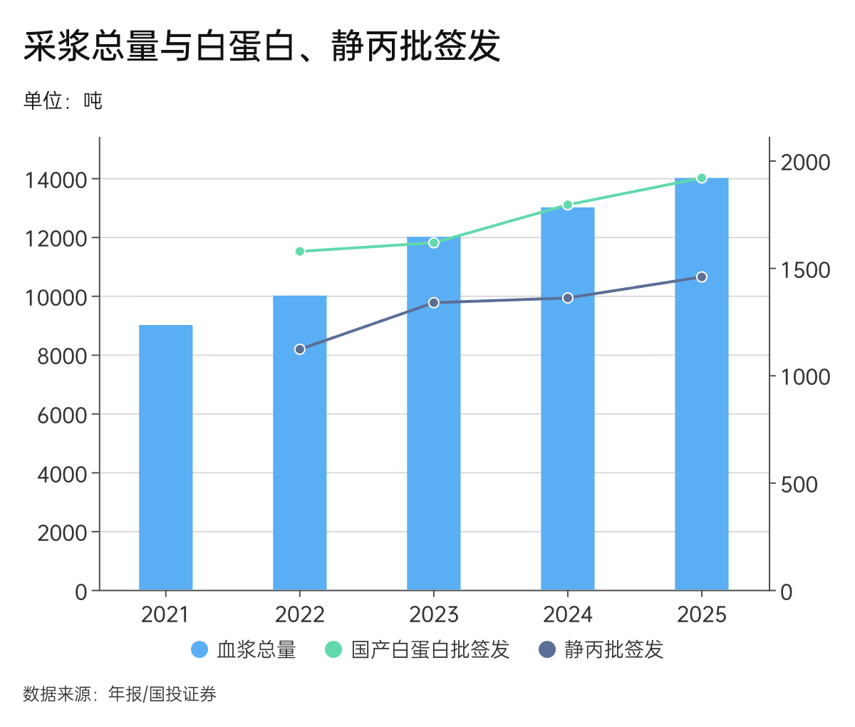 从批签发来看,据国投证券,2022年至2024年,国产人血白蛋白批签发数量从1576批次增加至1793批次,年复合增长率5.9%。到了2025年,批签发再进一步增加至1918批次,同比增长7%。