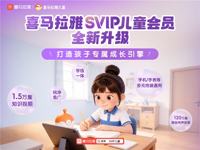 当下,虽然学习资源触手可及,但家长们依旧面临多重难题:优劣内容混杂、学习资源分散、互动与反馈不足、学习效果难量化、给孩子的陪伴和指导时间有限......在此背景下,喜马拉雅对其SVIP儿童会员权益进行全面升级,面向0-18岁用户,构建集“听、看、读、练”为一体的学习体验。
